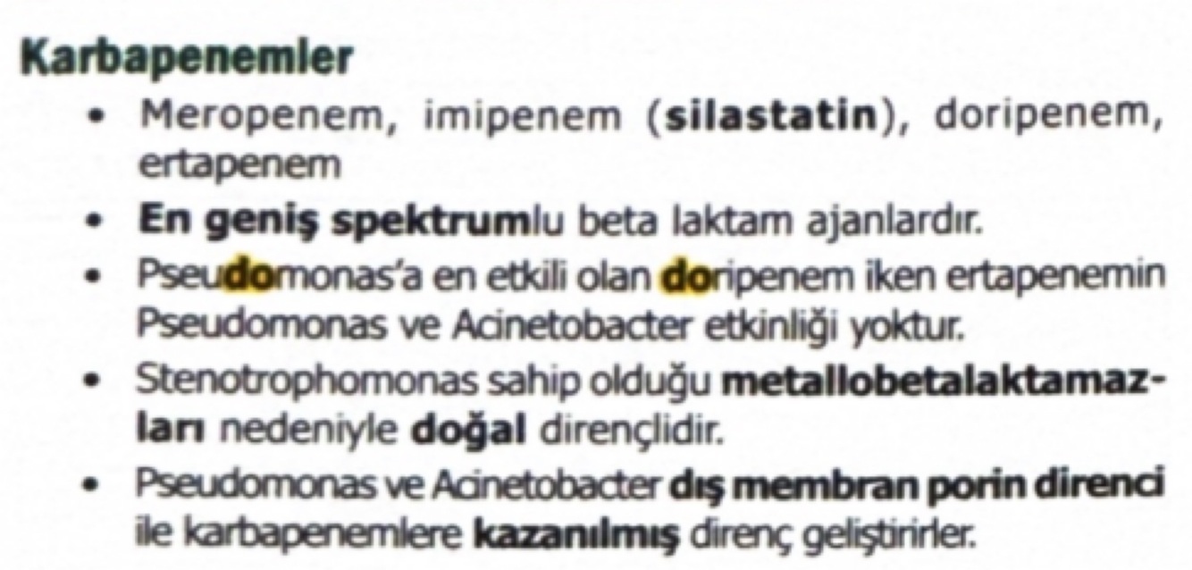 Doripenem, Pseudomonas’a karşı en etkili karbapenemdir.