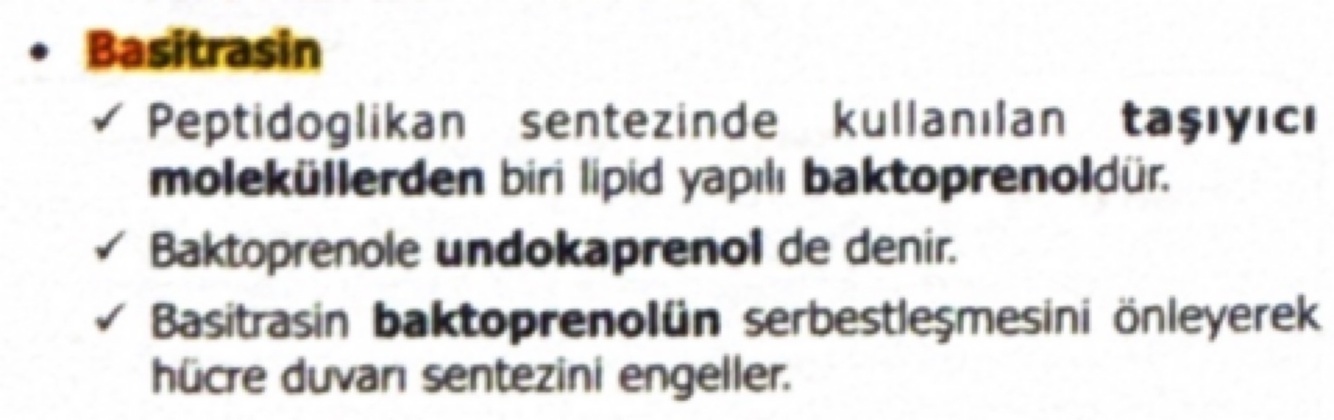 D alanın D alanin rezidülerine bağlanarak transpeptidasyonu engeller