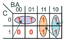 Blank 3-bit Karnaugh map for inputs A, B and C