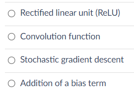 A rectified linear unit is a function that can add non-linearity to a neural network. Convolution and addition may be steps in a neural network but they do not add non-linearities.
