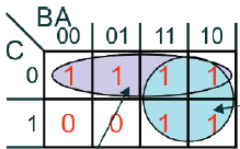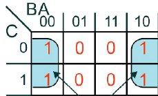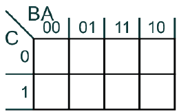 Blank 3-bit Karnaugh map for inputs A, B and C