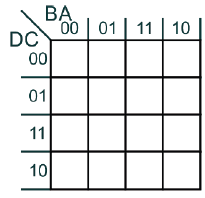 Blank 4-bit Karnaugh map for inputs A, B, C and D