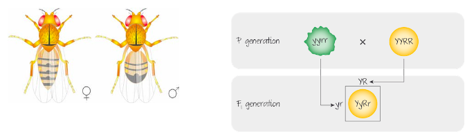 The allele for yellow seeds, Y, is dominant to the allele for green seeds, y; the allele for round seeds, R, is dominant to the allele for wrinkled seeds, r.