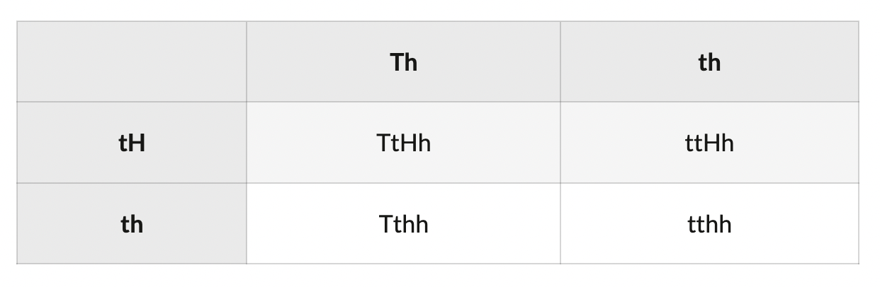 The two genes are not linked. If a tall smooth plant (Tthh) is crossed with a short hairy plant (ttHh), which are possible genotypes of the offspring?