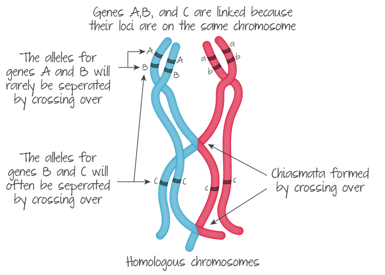 Diagram of linked genes are found on the same chromosome