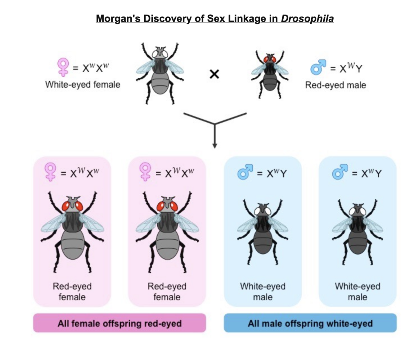 When cross-breeding red-eyed wild types with white-eyed mutants, he discovered a clear sex bias in phenotypic distribution