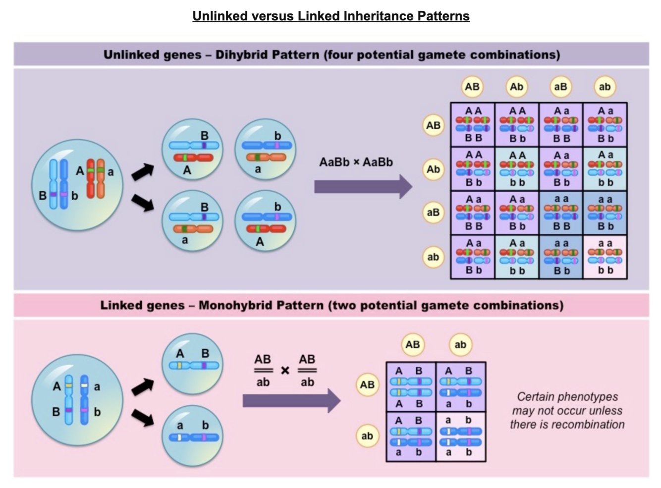 - Linked alleles could be uncoupled via (crossing over) to create alternative phenotypic combinations, but these new phenotypes would occur at a much lower frequency