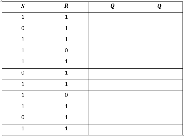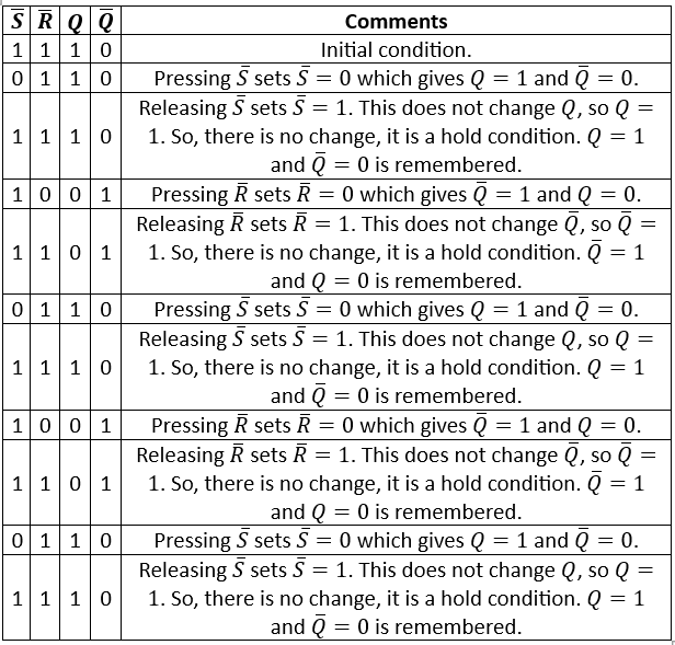 Table sequence for a NOT-S NOT-R latch
