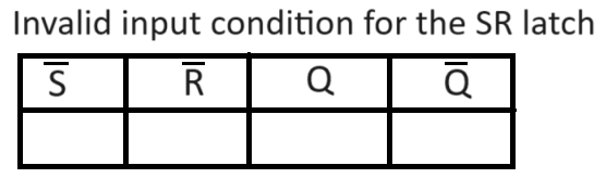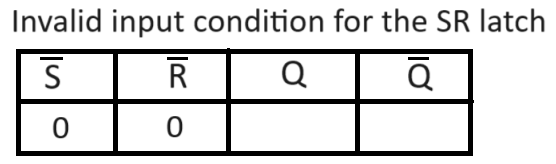 For a clocked SR latch, what is disallowed input state of S and R?