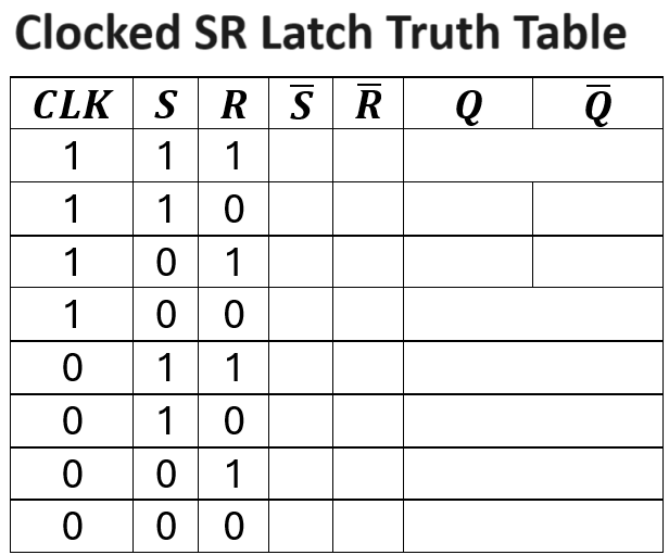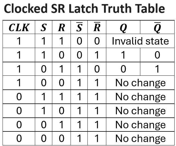 For a clocked SR latch, what is the logic of the clock that changes Q?