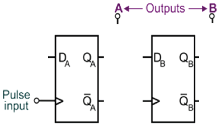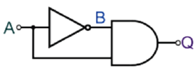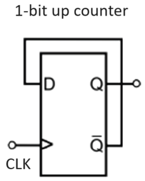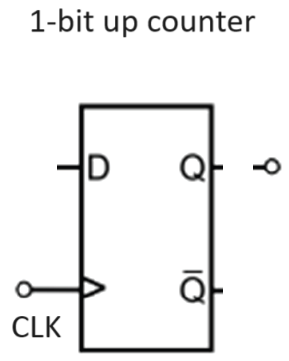 Show the outputs Q and NOT-Q for a 1-bit up counter