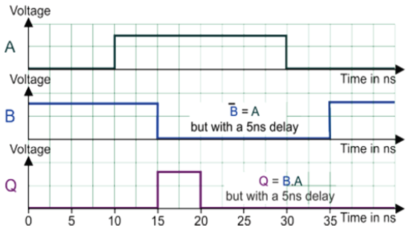 Use the graphs to show how a transition gate circuit creates a short output pulse
