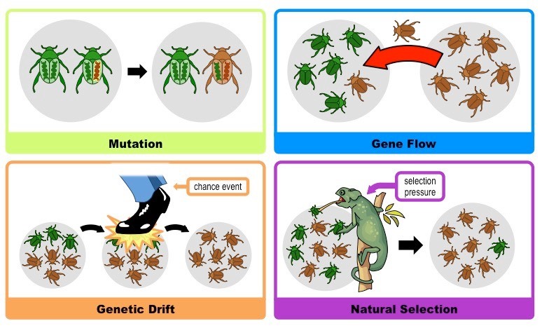 GENETIC DRIFT: chnage of a composition of a gene pool due to chance or random event
