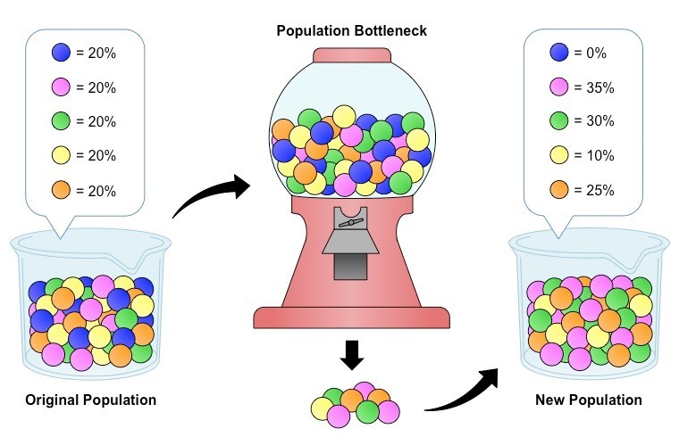 Remaining population smaller - more prone to genetic drift - new gene pool will be created