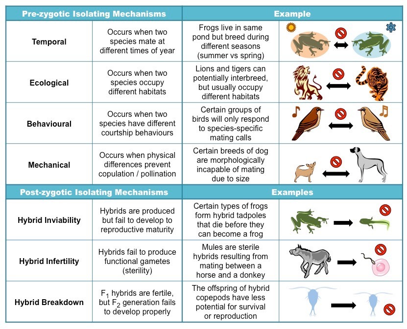 REPRODUCTIVE ISOLATION: when barriers prevent two populations from interbreeding - separate gene pools