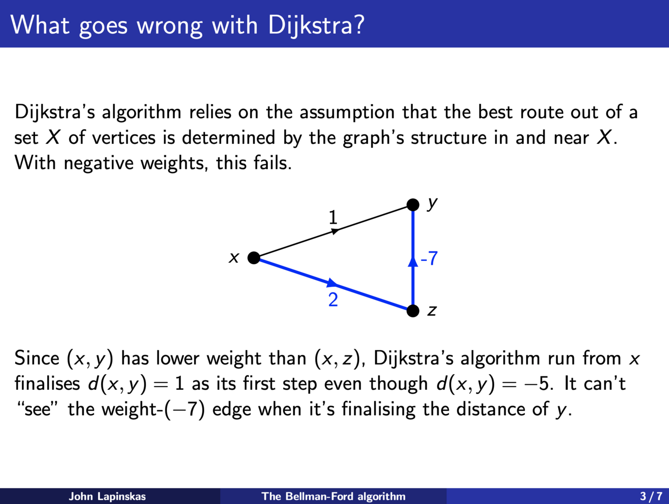 Why doesn’t Dijksta’s algorithm work for negative weights?