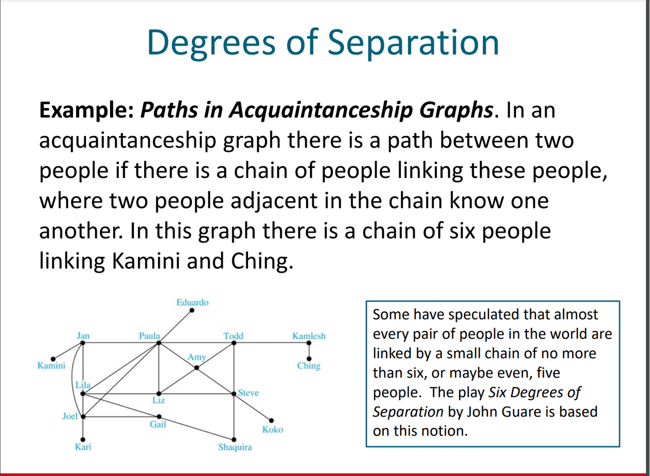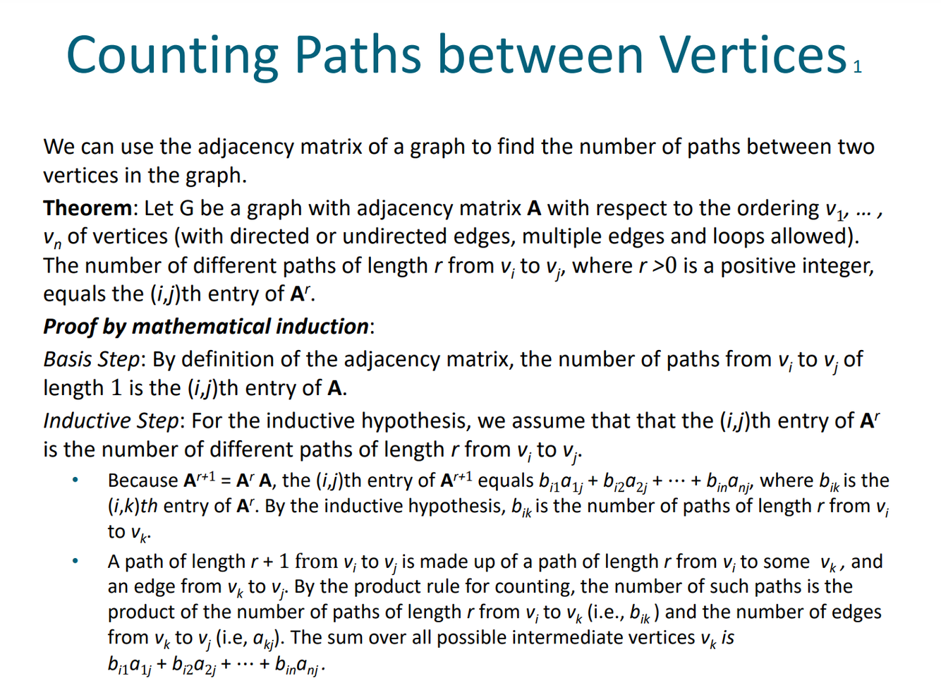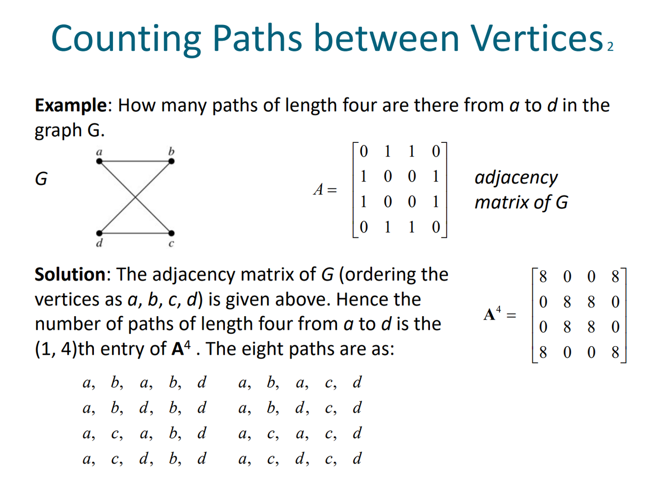 Informally, a path is a sequence of edges that begins at a vertex of a graph and travels from vertex to vertex along edges of the graph. As the path travels along its edges, it visits the vertices along this path, that is, the endpoints of these edges.