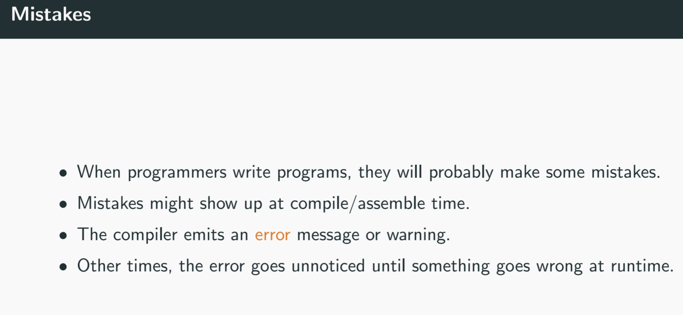 • Compiler: compile time errors