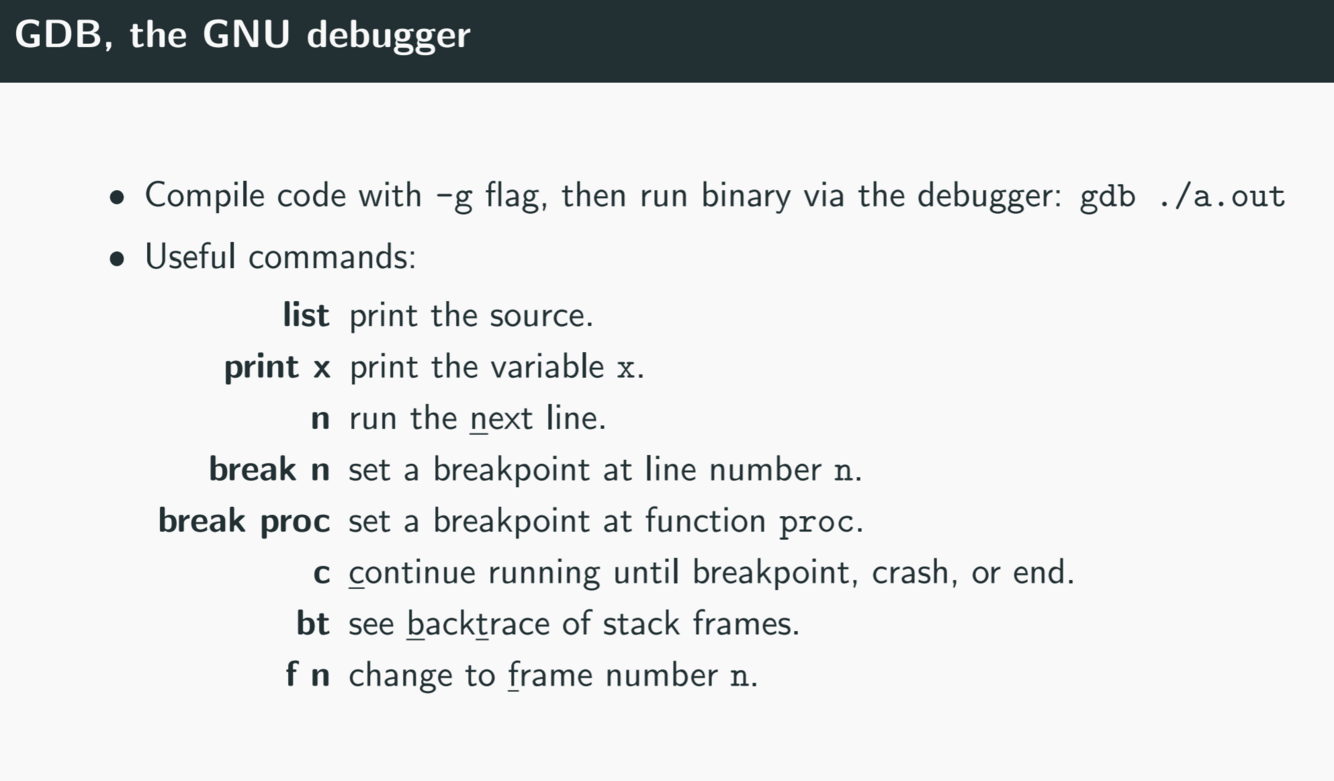 What are some possible commands in the GDB (GNU debugger)
