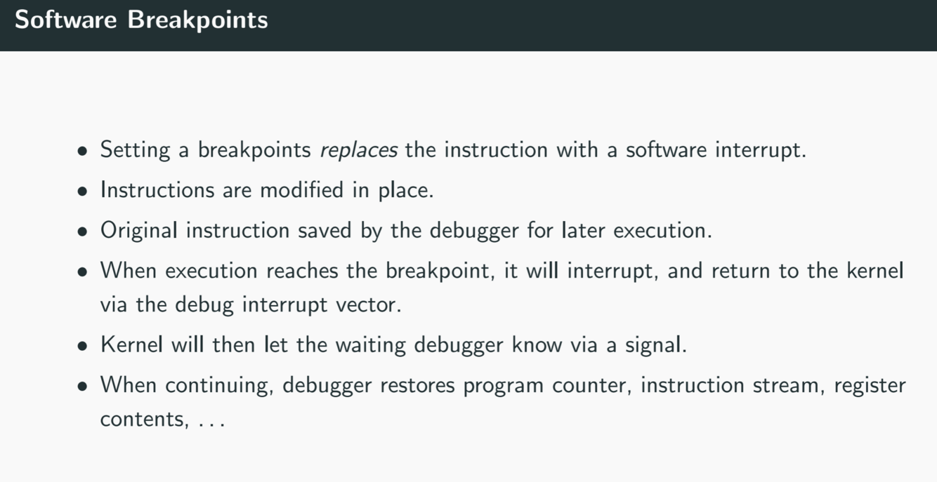 How do debuggers make use of software breakpoints