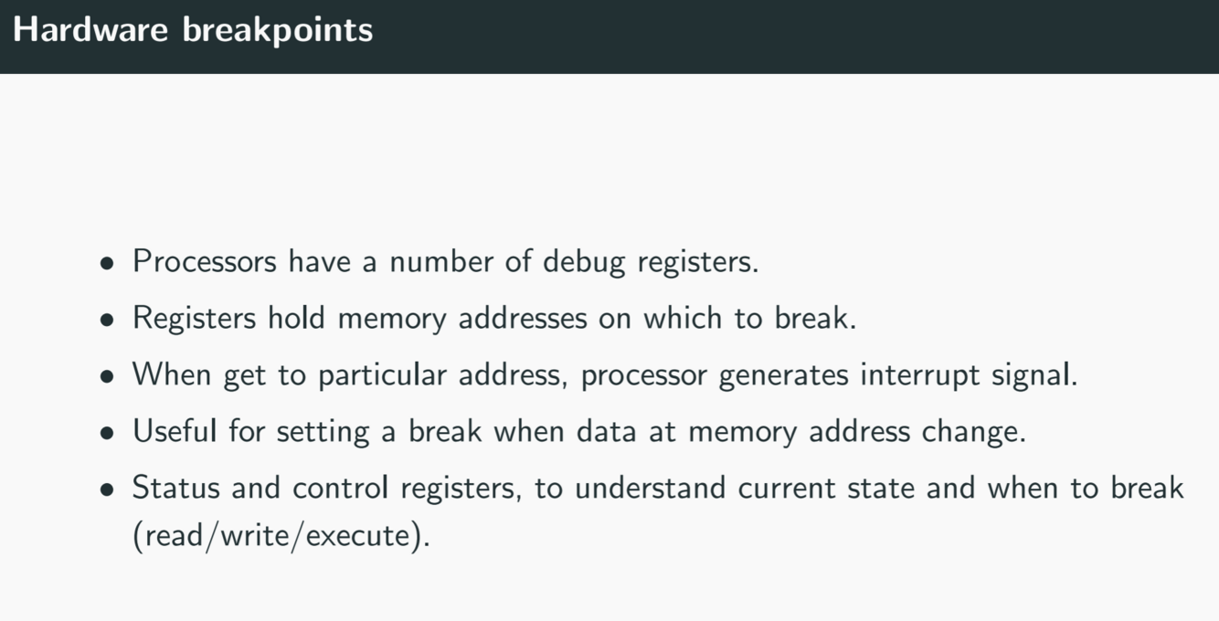 How can debuggers make use of hardware breakpoints