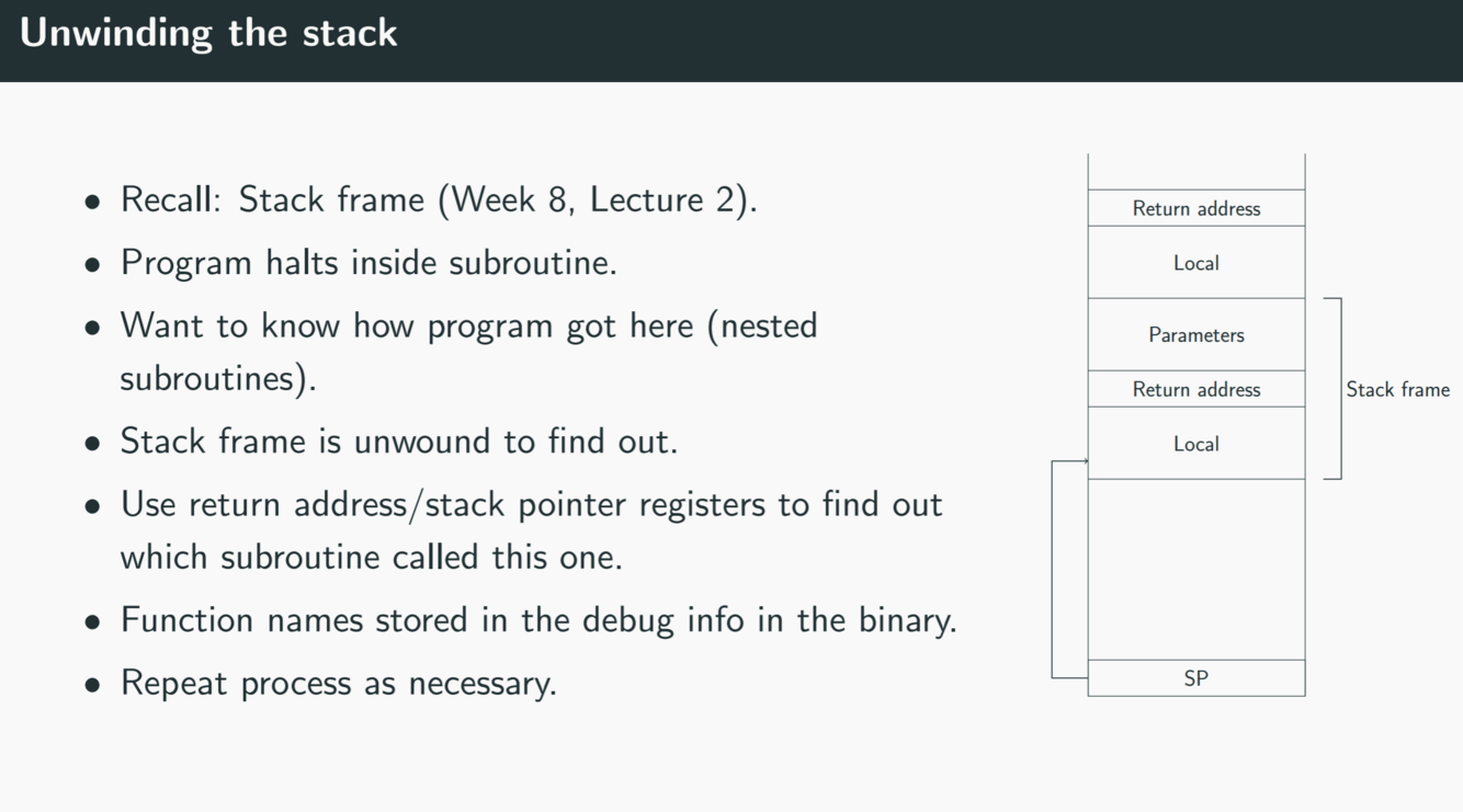 • Common format is DWARF (for ELF binary format)
