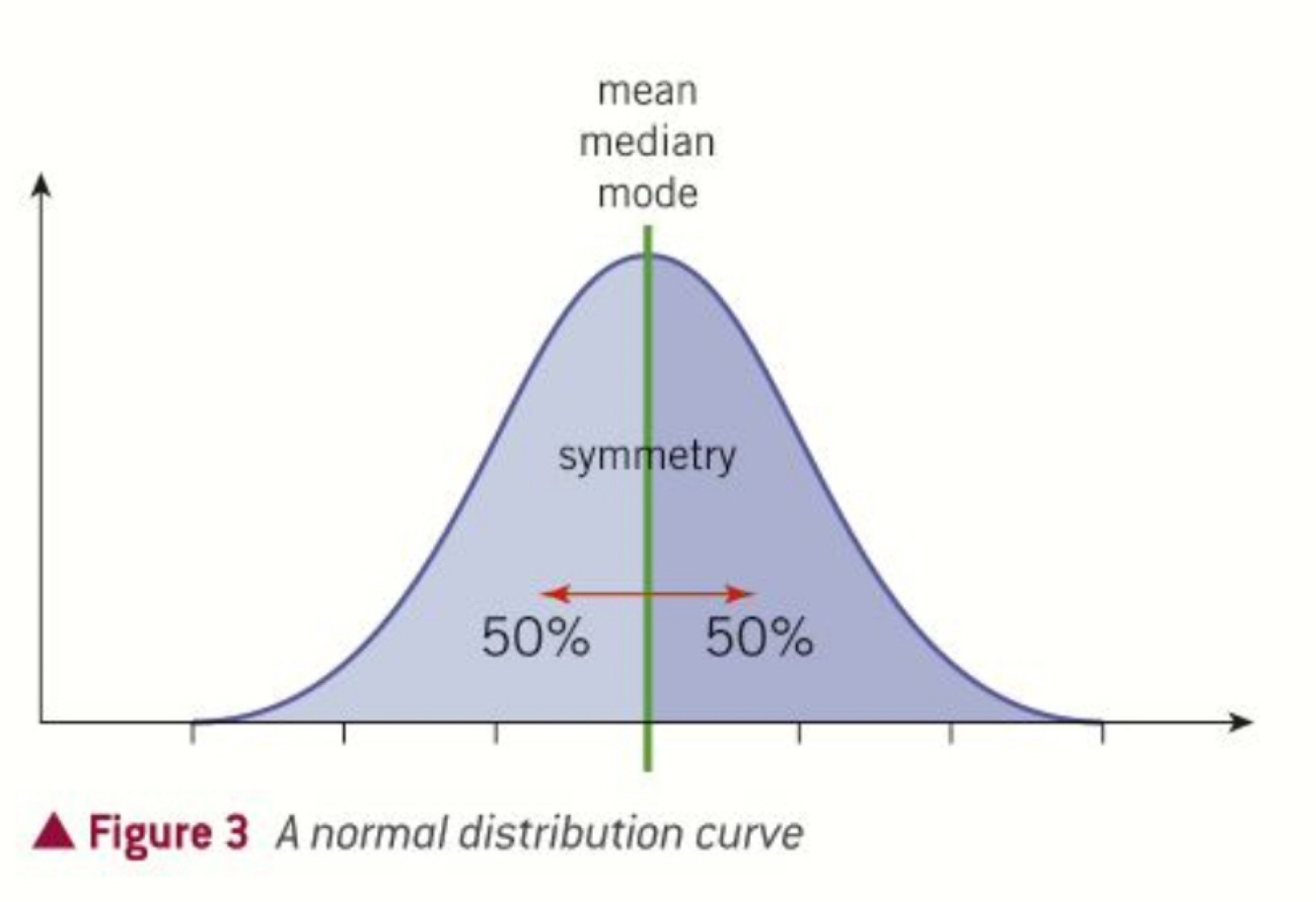 -Most values lie closer to the mean, the number of individuals at the mean are low