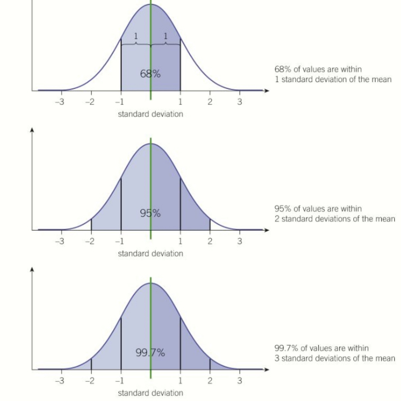 -99.7% of values are within 3 standard deviations of the mean