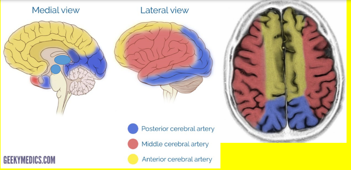 Inferior divisoin essentially supplies the lateral parietal lobe and superior temporal lobe hence it supplies primary sensory cortex, Wernicke’s area and both optic radiations. Hence will present with: