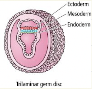 Trilaminar germ disc develops.