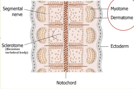 Development of somites leads to segmental innervation.