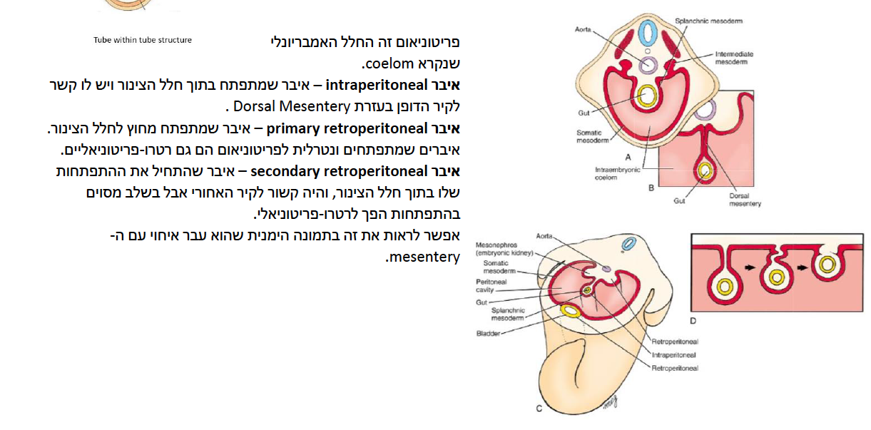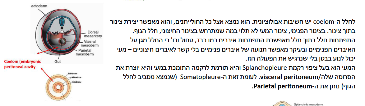 מה שצריך להסתכל באיור ולזכור זה שיש פיצול של המזודרם לשני חלקים, שמתקפל ויוצר הקואלום, שיהפוך להיות החלל הפרוטנלי.
