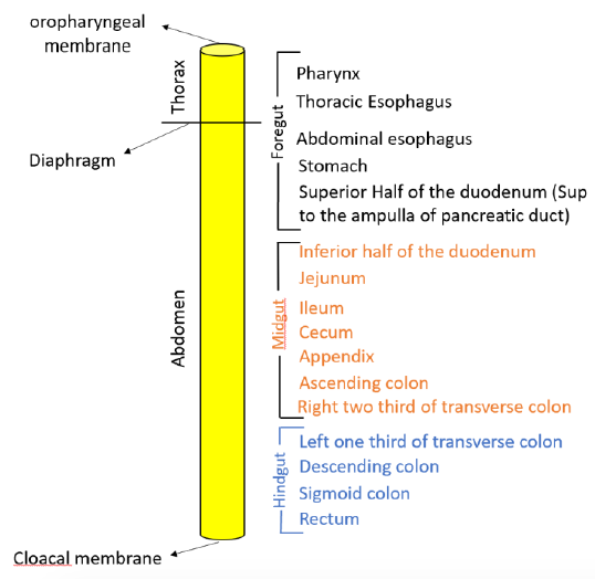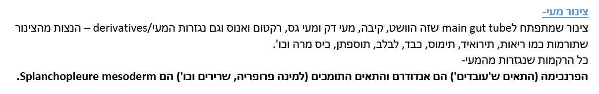 מהם החלקים המרכיבים את צינור המעי - מה נמצא בקצוות, מה נמצא באמצע , ולמה כל אחד מתפתח.