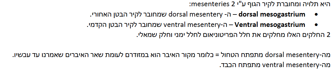 מהם שני המזנטרים שמחברים את הקיבה לקיר הגוף?