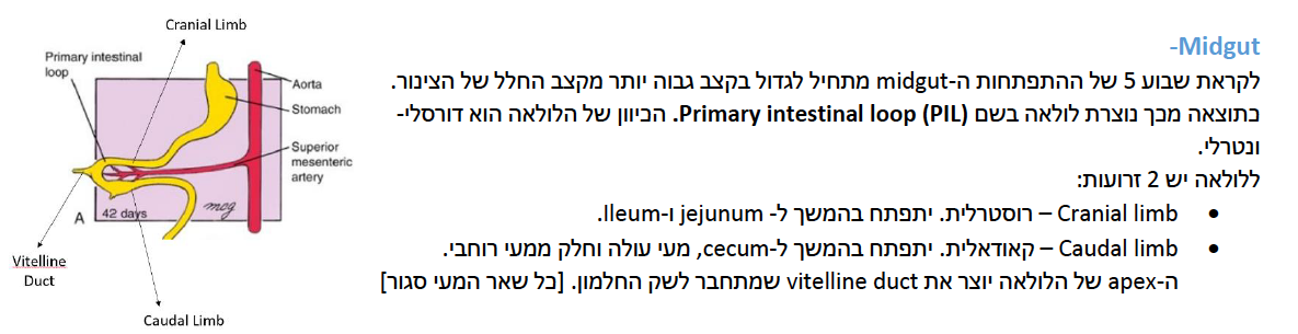 תתפתח לצקום, מעי עולה וחלק מהמעי הרוחבי.