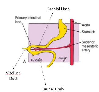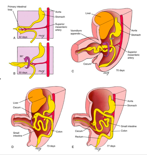 המעי נכנס לתוך אזור הטבור בעקבות הגדילה שלו ומסתובב ב90 מעלות נגד כיוון השעון על הציר הונטרלי-דורסלי