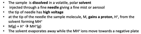 Describe electrospray ionisation.