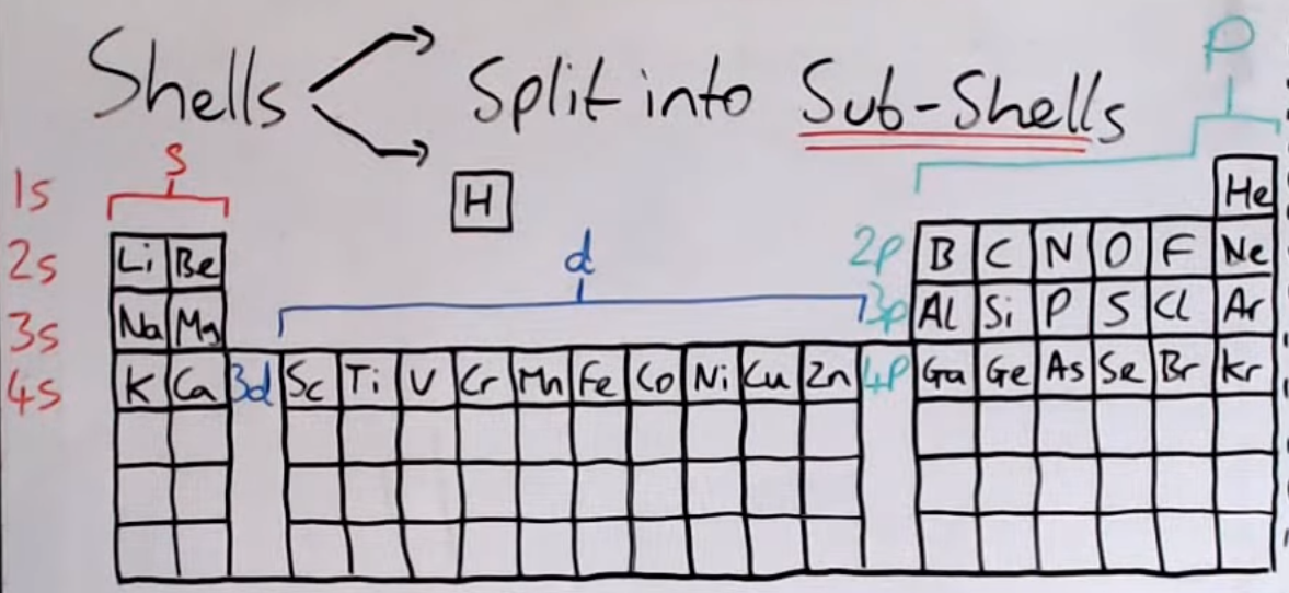 The principal quantum shells are split into subshells which are given the letters s, p, d and f