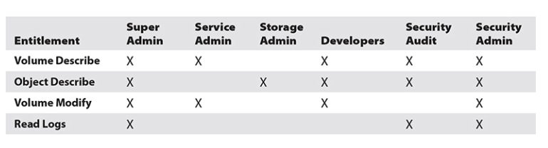 “To assist with planning appropriate access controls, you can use an entitlement matrix on platform-specific capabilities. This entitlement matrix is essentially a grid, similar to the following, that lists the users, groups, and roles with access levels for resources and functions: