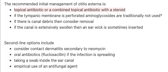 Always need to rule out ottorhea from an otitis media causing the otitis externa
