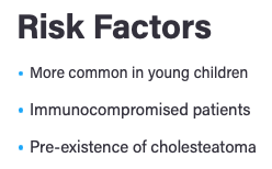 What is the pathophysiology of mastoiditis and some risk factors for this?