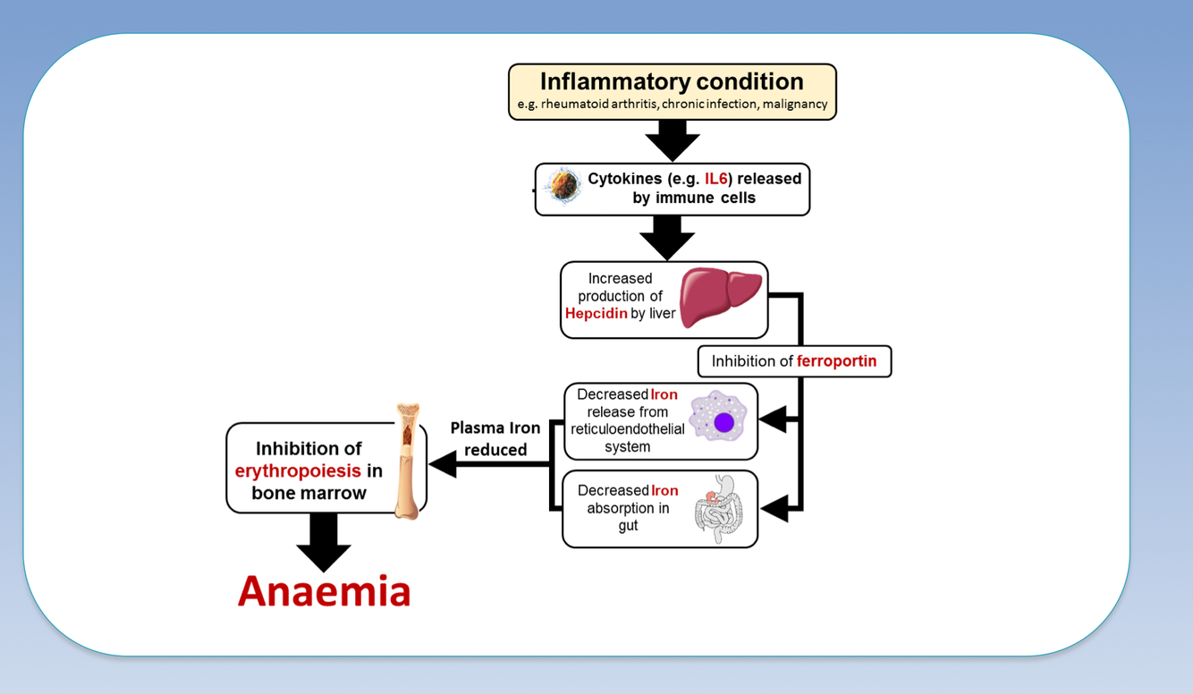 Explain how chronic inflammation can cause anaemia.