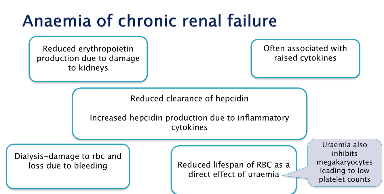 Explain how chronic renal failure can cause anaemia.