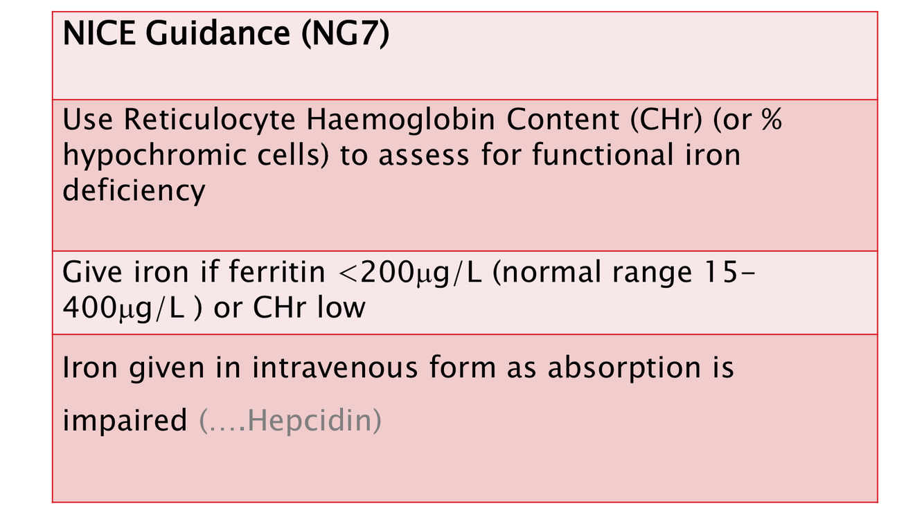 How should anaemia of chronic renal failure be managed?