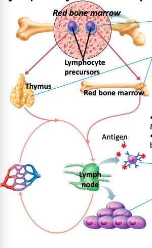 describe what happens to lymphocytes in the thymus