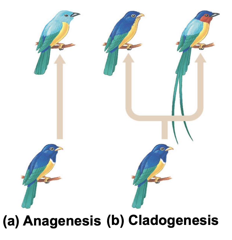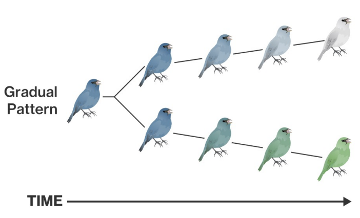 In the punctuated equilibrium model, a new species undergoes changes quickly from the parent species, and then remains largely unchanged for long periods of time afterward