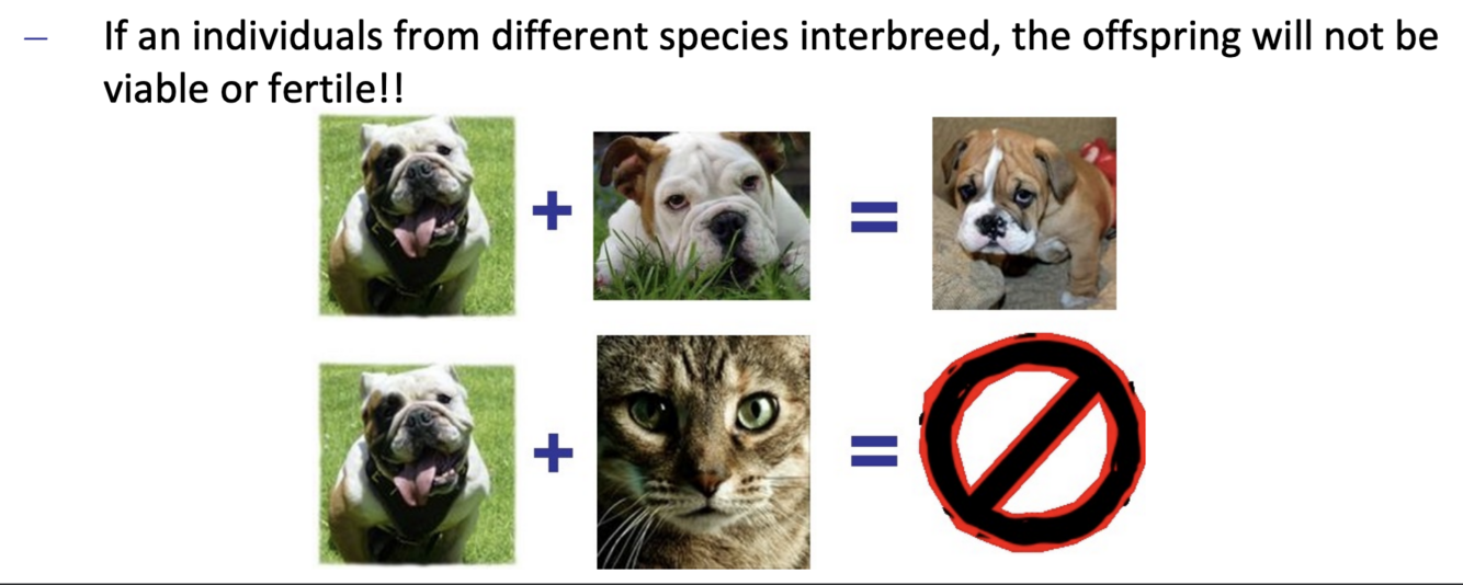– When the offspring of two parents cannot reproduce (offspring are sterile)