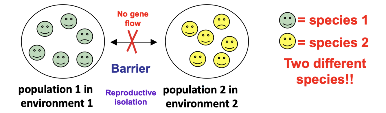 – Species breed at different times (this means different times of day or different seasons or even different years!)