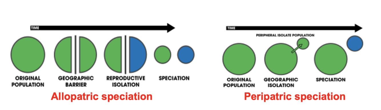 – The main difference between allopatric speciation and peripatric speciation is that in peripatric speciation, one group is much smaller than the other