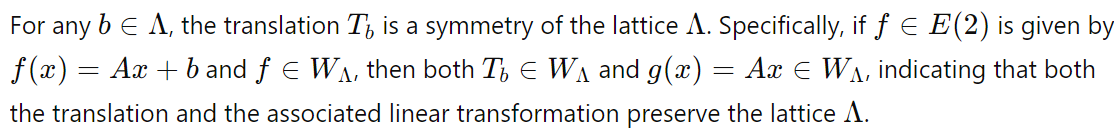 Describe the proof of which translations and linear transformations are symmetries of a lattice